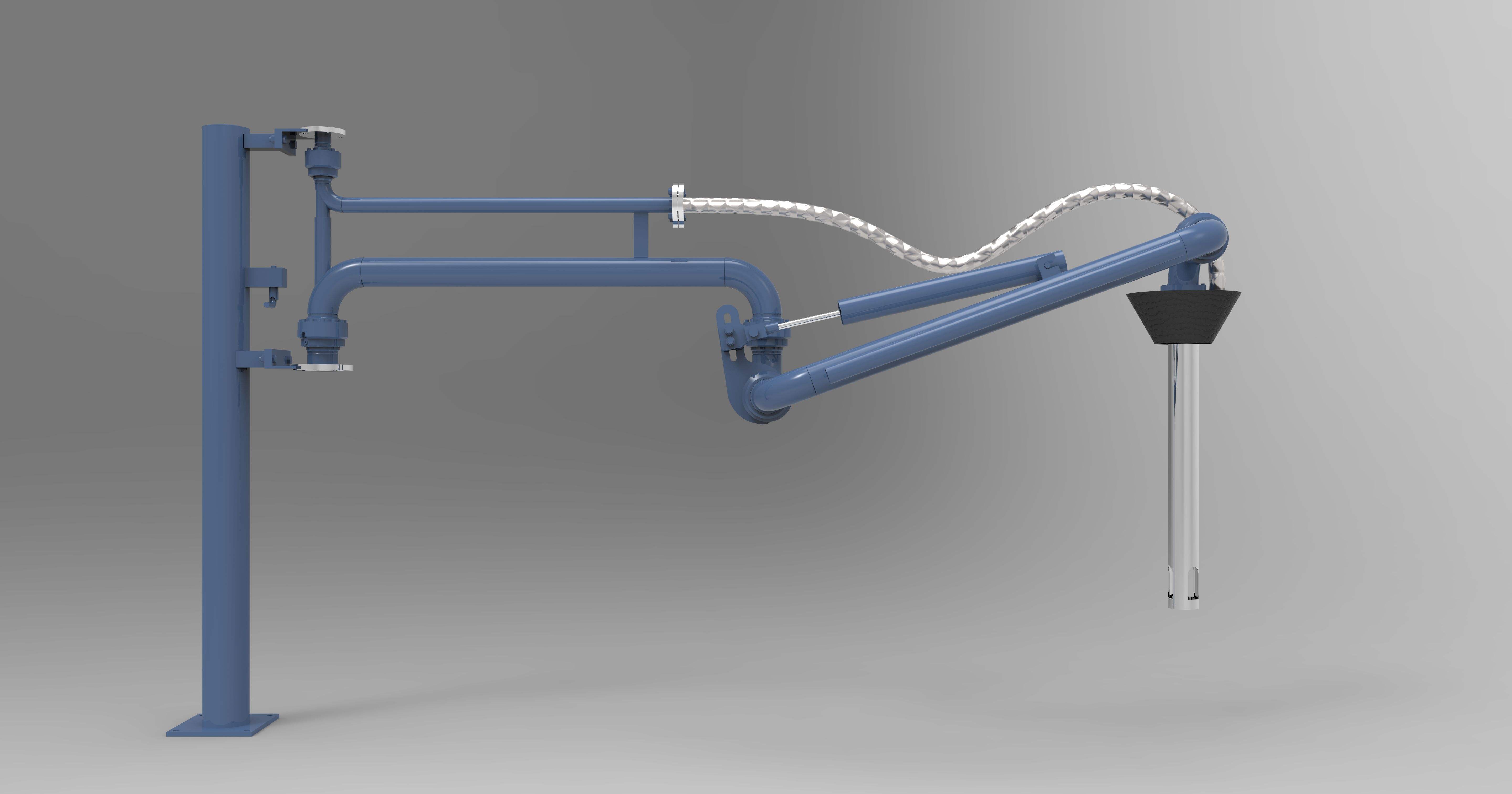 火車鶴管要求鶴管具有足夠的長度及移動空間(高度、水平距離),以保證實現列車進入裝卸棧臺后達到不摘鉤對位、浸沒式裝油和卸油作業的要求,并滿足安全要求?;疖圍Q管需要氣密性好、輕便靈活、操作方便。
